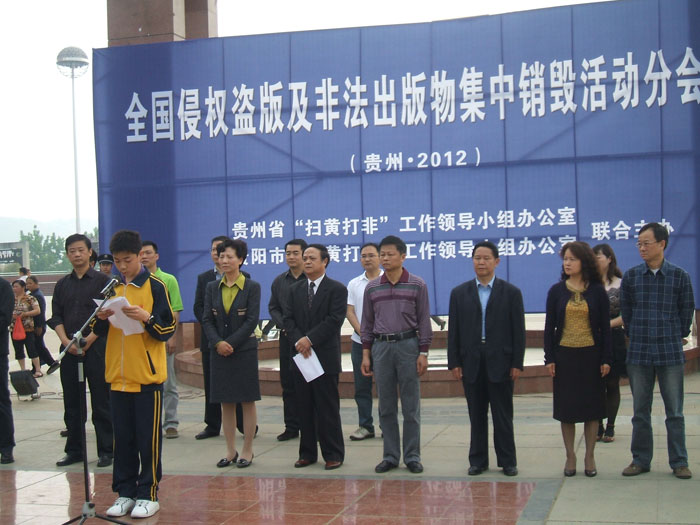 孙寿山在2012年侵权盗版及非法出版物集中销毁活动北京主会场上的讲话
