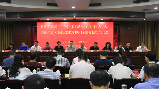 (各地强化“扫黄打非”联防协作,图为江西、湖北、湖南三地2017年6月,在江西修水县召开三省迎接党的十九大、加强区域联防协作联席会议)
