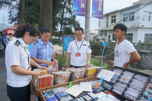 (各地“扫黄打非”部门日常加强文化市场检查、巡查。图为2017年7月,浙江省台州市文化市场执法机构与公安联合开展“扫黄打非”市场执法检查工作)