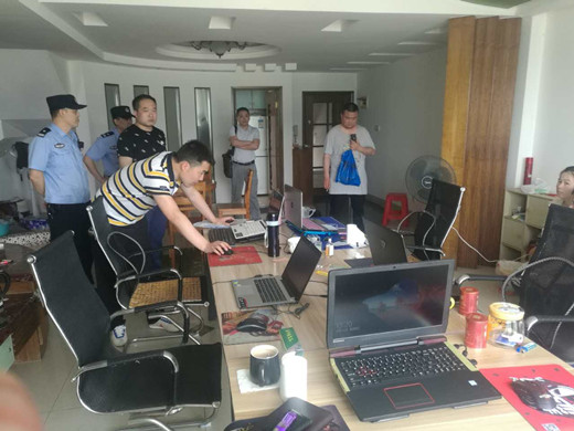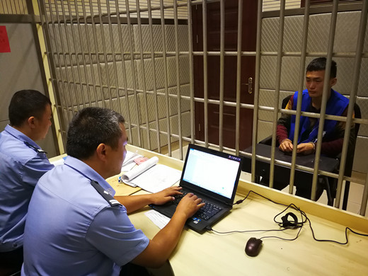 (山东泰安公安机关查办月光宝盒案,图为办案人员审讯犯罪嫌疑人之一平台运营者)